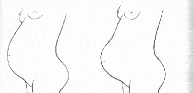![]() Rycina 1. Kształt brzucha przed obniżeniem i po obniżeniu się dna macicy